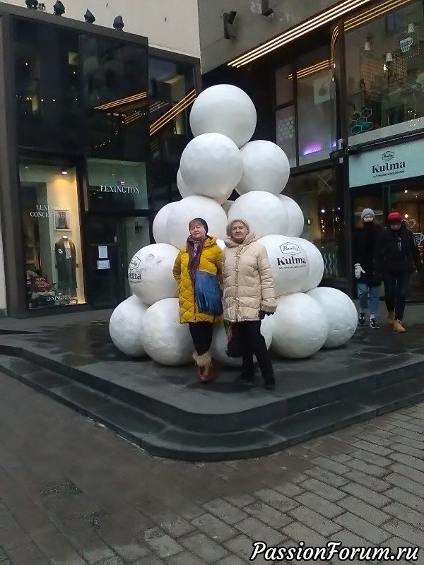 А теперь - Хельсинки. Как мы вообще там оказались. Очень просто. Летели мы из Сибири, то есть далеко, летели всего на неделю ( вы же помните, что мы летели на Рождество в Таллинн). И мы решили: раз уж мы добрались до Прибалтики, то там рукой до Финляндии подать, да еще и по воде. И мы через интернет купили однодневный круиз на теплоходе в Хельсинки. Утром в 7 часов отплываем, 2,5 часа и мы в столице Финляндии - Хельсинки. А вечером, в 20-30 возвращаемся в Таллинн. Это был последний день нашей встречи. Надо сказать, что поездку нашу нельзя назвать на 100% удачной: 26-ое в Хельсинки - нерабочий день - Рождество. Поэтому экскурсионные автобусы, на которые мы построили свои планы, не ездили, и мы оказались в чужом городе, в чужой стране, без гида. Мы попытались на вокзале в пункте информации добыть какие-нибудь схемы на русском языке, но попытки наши не увенчались успехом. И мы - девушки неунывающие- порешали просто бродить по улицам и смотреть как здесь живёт чужой народ, тем более, что ведь Рождество, и всё красиво, посмотреть есть на что. Надо сказать, что везде попадались люди, говорящие на русском и оказывающие нам помощь, когда она была нам нужна.