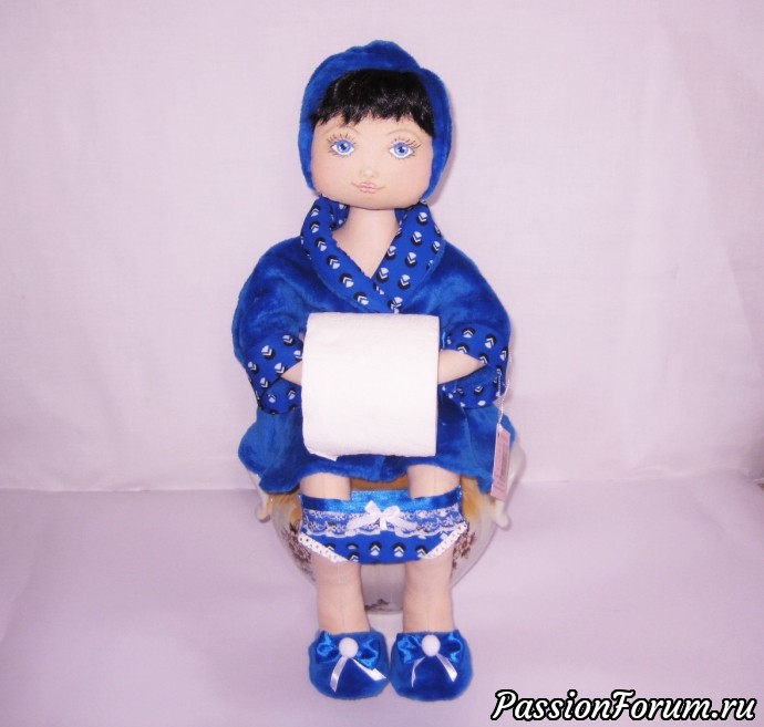Здравствуйте дорогие мастера и гости форума. Полюбившиеся куклы держатели туалетной бумаги не выходят из моды. А так как, многие мастера пишут в комментариях " зачем таких красивых садить в туалет, жалко.." и тому подобное, я устала доказывать, что в туалете, ванной тоже должно быть красиво, почему кухню украшаем, в ванную "жалко", что ванные комнаты тоже королевские бывают и за гордость там посидеть( сама бы в такой поселилась), ну и просто НРАВИТСЯ НАРОДУ! Что ж делать-то ? Буду шить, радовать народ. В общем, делаю теперь кукол многофункциональных. С коробочкой, шкатулочкой в руках для всяких женских штучек или для бумаги туалетной( как кому нравится). Еще стала делать кукол и другой комплекции, меньшего роста, но более пухленьких, и длинных и худышек, с рисованными личиками и более кукольными. А еще делала на заказ куклу со спущенными трусиками. Ужас правда ?! Но желание заказчика закон, главное доволен остался. Ну, показываю. Спорьте! Готова.