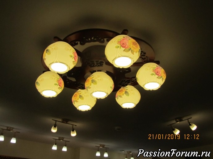 Удивительно красивые плафоны второго зала, в котором представлены экспонаты, рассказывающие о производстве чая в Китае