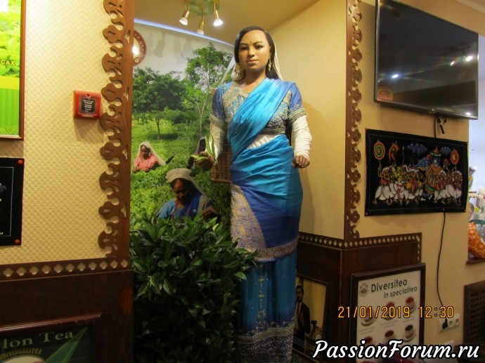 Вот такая красавица, сделанная из воска приветствует нас у входа