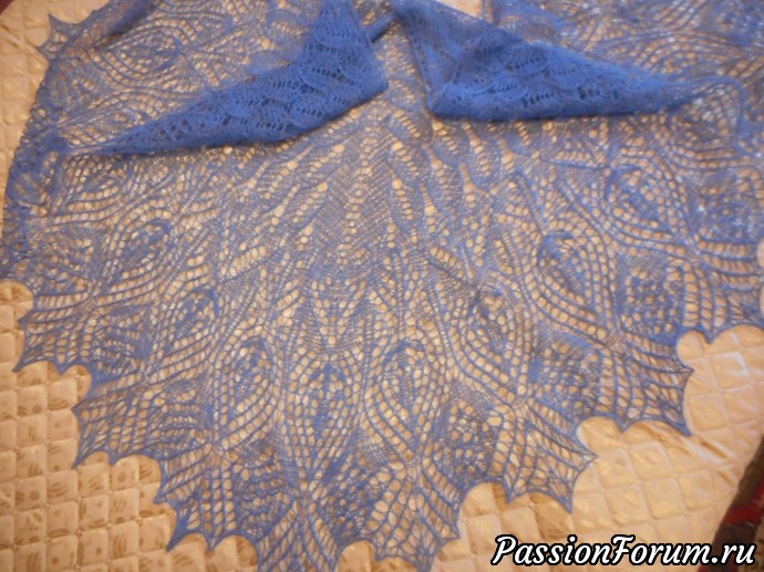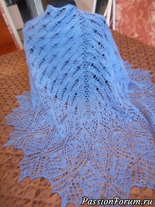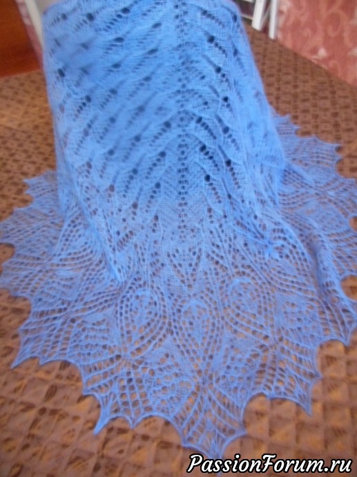 Размер шали:220 см-по верхнему краю и 102 см-по вертикали.
