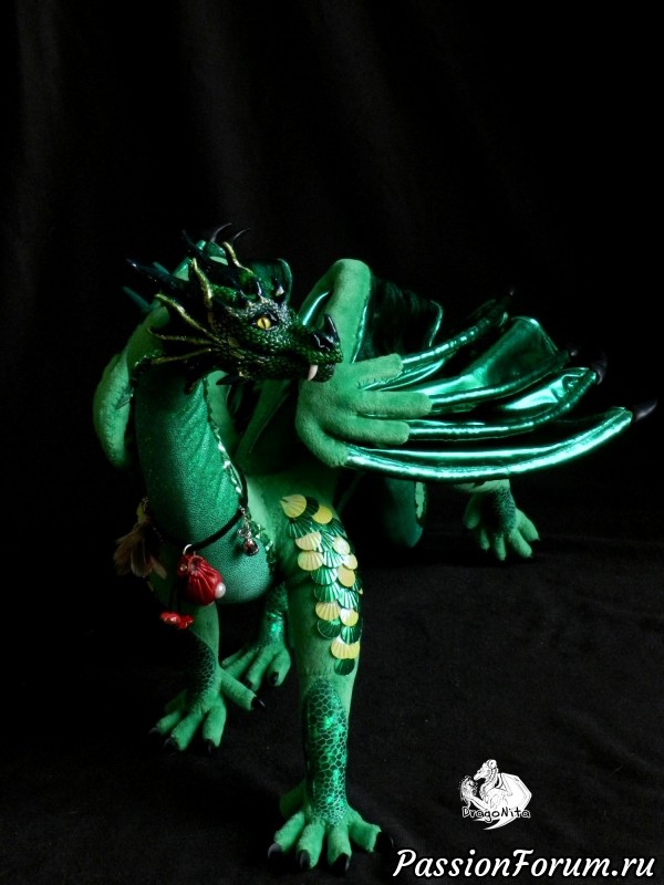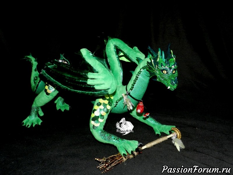 Очень люблю необычные заказы, ведь они поступают от очень интересных и необычных людей! Обратилась ко мне самая настоящая колдунья, которая и стихи пишет со сказками, и травами занимается, и мыло варит, и вяжет, а уж собеседник она - просто замечательный! Есть у неё персонаж её сказок - колдунья Диамонтэ, которая может перевоплощаться в могучую драконицу изумрудного или алого цвета. Персонаж с богатой историей, багажом знаний и аксессуаров. А почему бы и не рискнуть? Куклу делала я достаточно долго, ещё дольше времени ушло на создание всяких мелочей для её образа, но результатом заказчица осталось довольна. Её персонаж оказался таким притягательным, что несколько моих подписчиков написали коротенькие истории для Диамонтэ.