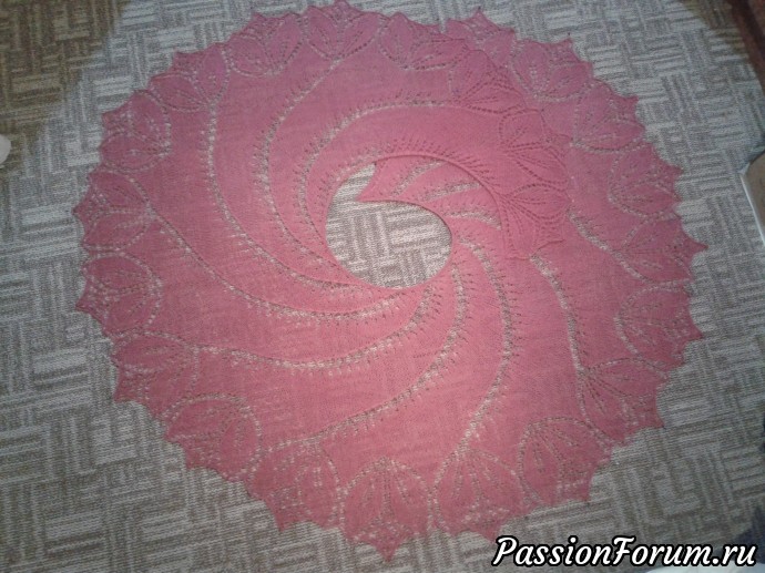Насмотревшись Ваших работ , я подхватила вирус "шалемании" . И связала свою первую шаль - "Бегониевый вихрь" Вязала для мамы . Схема в свободном доступе.