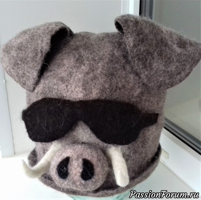 Лена, отличные у тебя работы! Ты на все руки мастер: и сухое валяние, и мокрое. А какой крутой перец твой кабанчик в чёрных очках!