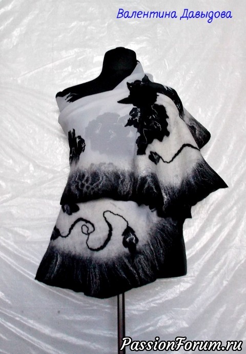 Палантин валяный "Чёрное и белое"
