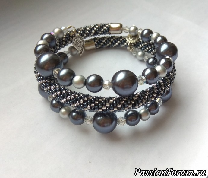 Месяц январь был очень богат на заказы браслетов. Чаще всего предпочтение отдают браслетам на проволоке с памятью, но был заказ и на браслет - толстый жгутик, такой делала впервые. К нему ещё будет заказ на колье - жгут и серьги.