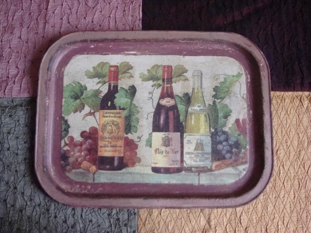 Мне нравиться тема на подносе. Вино и винный цвет вокруг картинки. Но на мой взгляд потёртость сильнее, чем нужно.