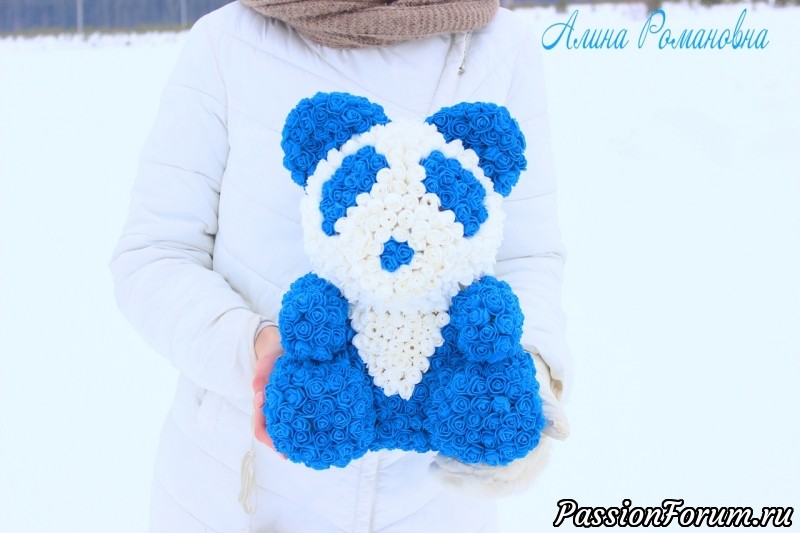 ОГРОМНАЯ ПАНДА!!! МАСТЕР-КЛАСС МИШКА ИЗ РОЗ СВОИМИ РУКАМИ!