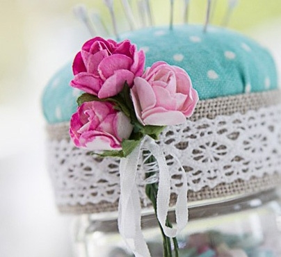 6. Украшаем бортик нашей игольницы кружевом, розочками с лентой.