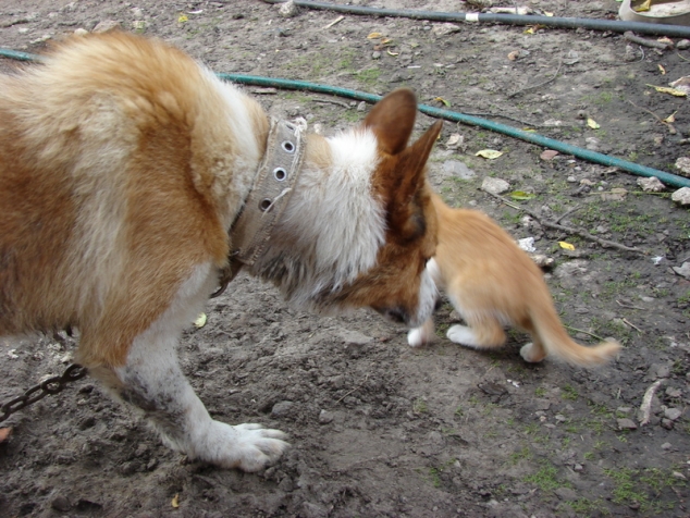 Рыжий "лайк" принюхивается к мелкому.....а тот бочком, бочком...