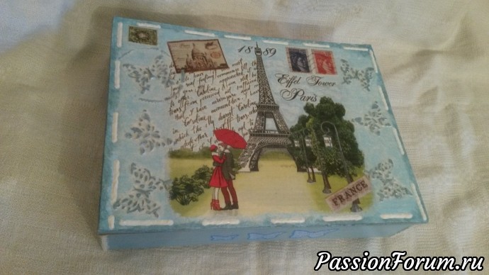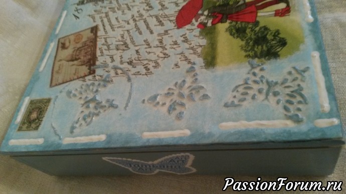 В третий раз сделала крышку для коробки из фанеры. Коробка предназначена для писем и открыток от подруг. Крышка тоже из фанеры
