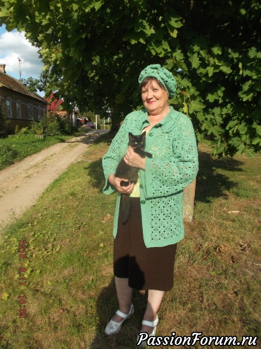 И ещё. Я бы воротничок у кардигана связала такой же вязкой, как и планки. Опять перегруз. Отсюда — мнимая «старомодность»… Про пуговки уже сказали: они немного тяжеловаты к кардигану. Я думаю, если Вы внимательно рассмотрите эти нюансы, то поймёте, что, сделав небольшую коррекцию, полу́чите моднейший комплект!!! И никакого намека на старомодность!!! Это — правда!!!