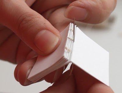 Шаг 2. Теперь вам нужно сшить ваши миникнижечки в одну. Это совсем не трудно. Сшиваем книжечки по очереди методом коптского переплета или любым другим знакомым вам способом, можно и на машинке.