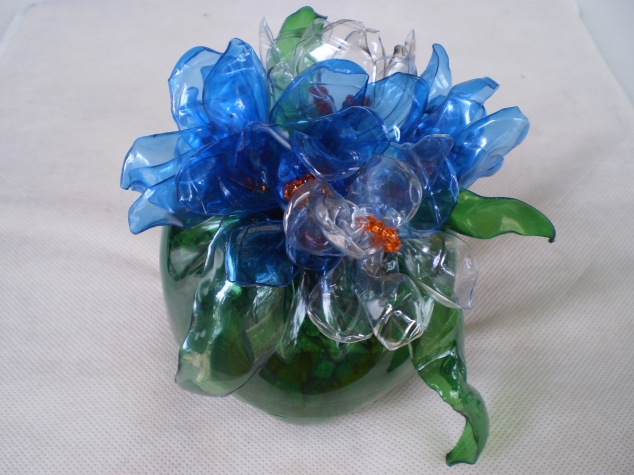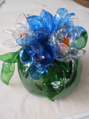 вот еще несколько композиций цветов из пластиковых бутылок.
