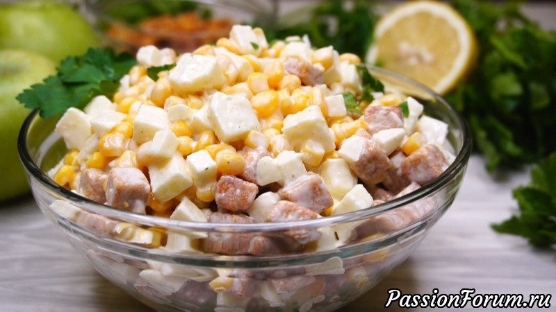 Салат «Три Минутки». Такой салат быстрого приготовления — просто находка! Готовится он на скорую руку, а получается очень вкусным. В нем всего лишь 3 ингредиента, которые вы с легкостью найдете у себя дома.