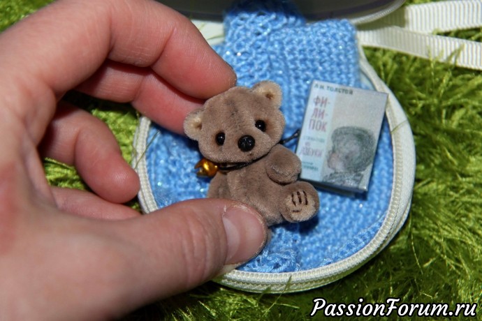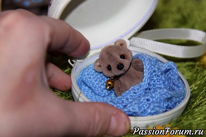 Медвежонок выполнен в технике тедди, голова и лапки подвижны. Рост 4 см. Самостоятельно сидит.