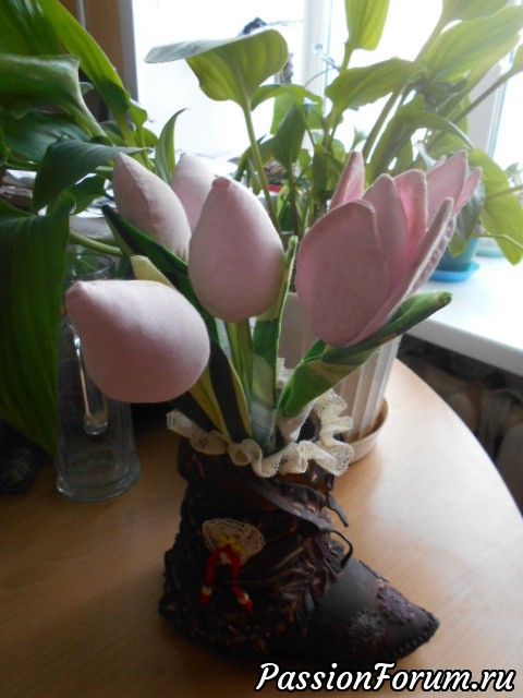 Вот такие тюльпанчики сшила из ткани для себя любимой, немного поэксперементировала и получились цветочки с лепесточками.