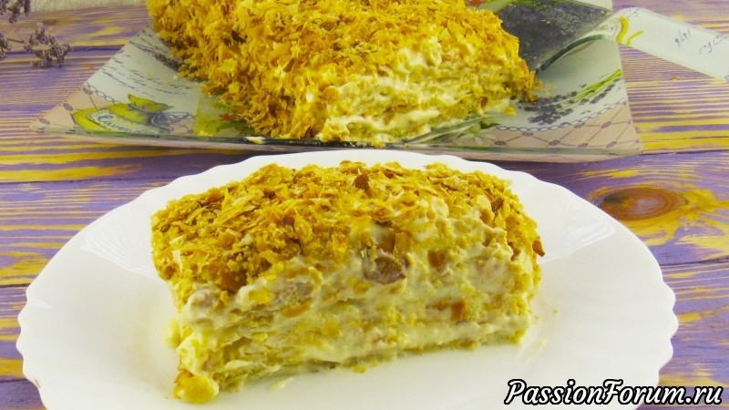 6. Посыпаем крошками, оставляем на 30 минут в тёплом месте для пропитки, и можно кушать. Если Вам нравится более пропитанный тортик, можете оставить в холодильнике на 12 часов.