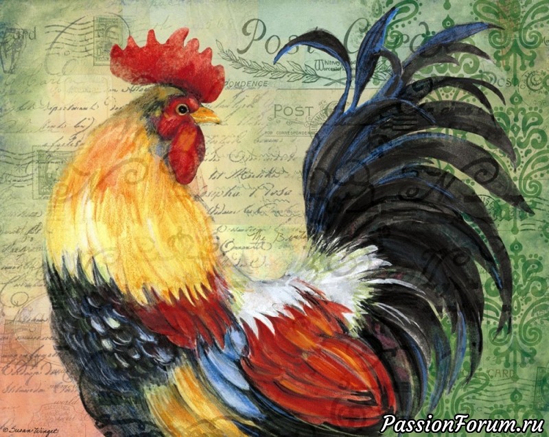 Красавец Петя - петушок Художница Susan Winget.