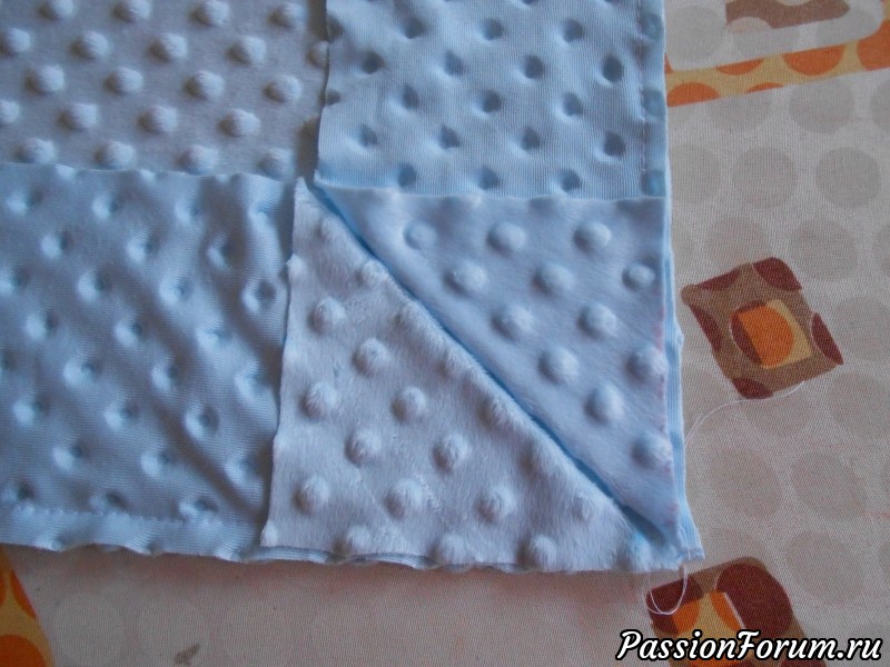 Ткань голубая- плюш минки, звёздочки- бязь. Размер одеяла 1,0 х1,0.