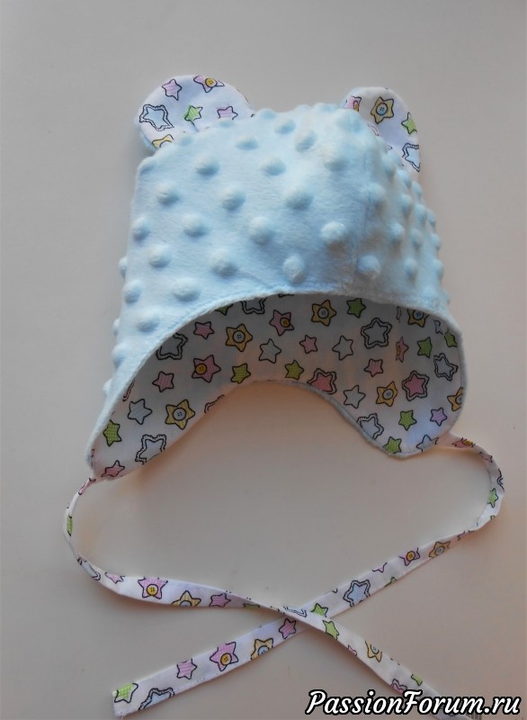 Сшила внутреннюю и наружную детали шапочки, оставить отверстие, для выворачивания.