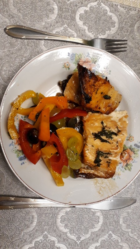3 сладких перца разного цвета, 200 г белого и черного винограда, 0,5 стакана оливкового масла, соль, перец по вкусу.