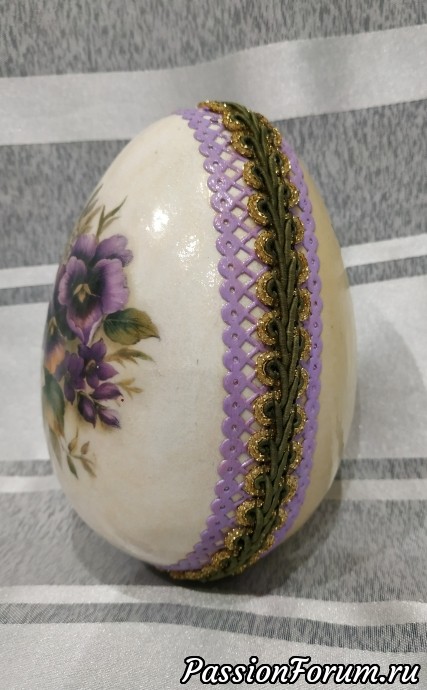 Очень красивое яйцо. А у меня пластиковая форма я делала так же.но не могла вынуть заготовку, прикипела к форме, еле отковыряла.Следующую делала с пищевой пленкой, поэтому поверхность складочками.