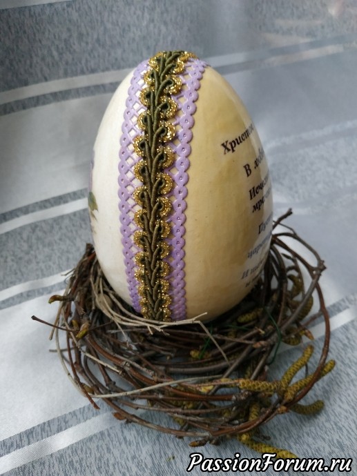 Пасхальное Яйцо самый яркий символ праздника Светлого Воскресения Христова.Вот поэтому была сделана эта работа. Материалы:форма для отливки,алебастр,клей ПВА,распечатки,лак и краски акриловые,2 вида тесьмы,клей пистолет,клей гель момент.