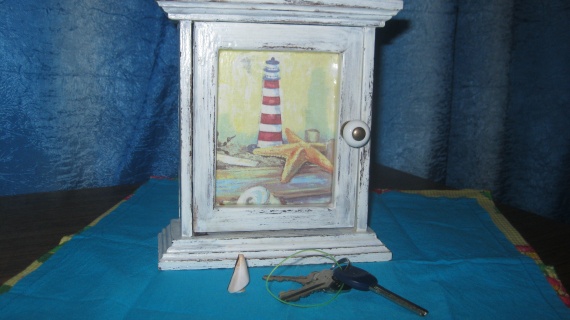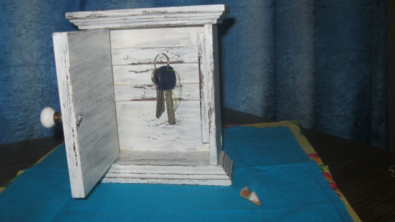 Вот такая ключница долго не давала мне покой.Уж очень дорогие заготовки.Но желание пересилило и я приобрела заготовку и с огромным желанием преступила к работе.Получилось именно то, что хотела.Старенькая, потрепаная временем вещичка.