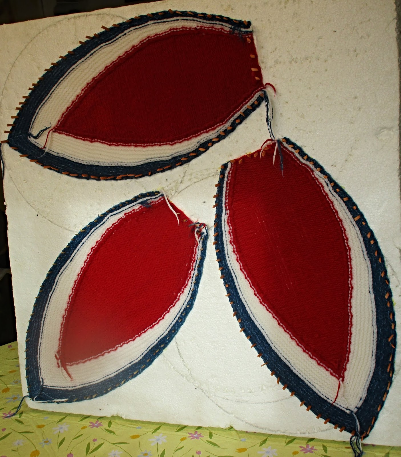 Затем натянула связанный лепесток,заблокировав его очень часто- деревянными зубными пинчетками на пенопласте. Специально заблокировала на изнаночную сторону.