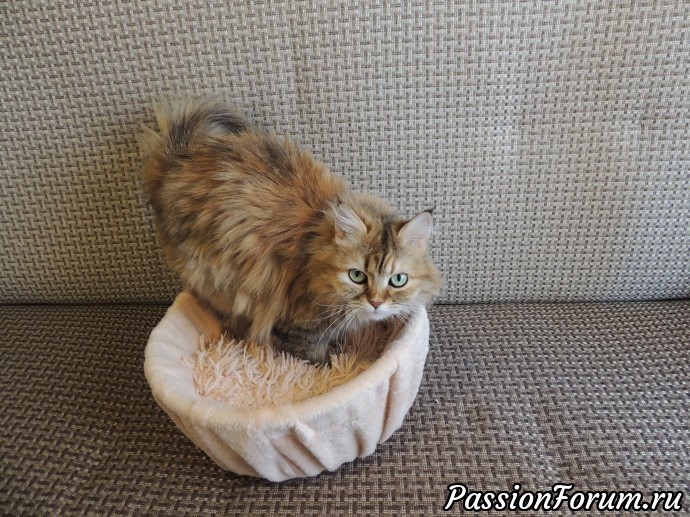 Поэтому, после долгих раздумий, они, все вместе, превратились в "кошачье гнёздышко". И моя Коричка оценила столь экономный вариант своего лежачка!