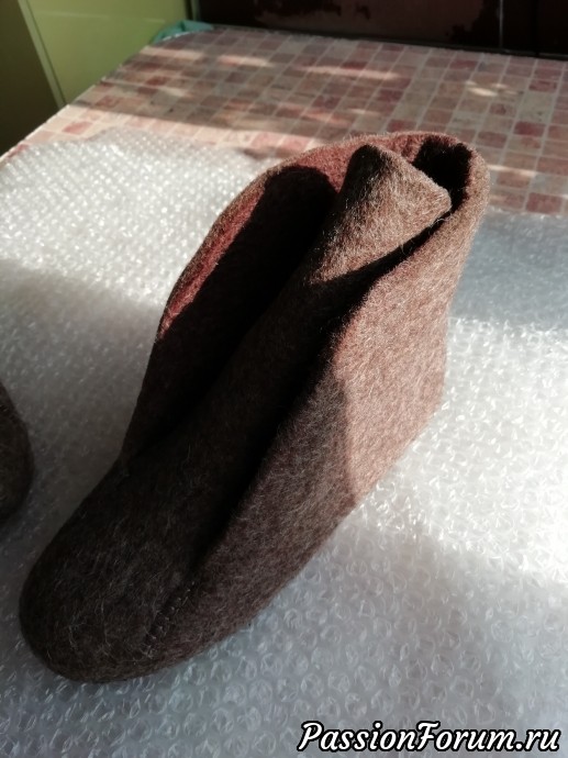 - испорченные ботинки или вернее то, что должно было стать ботинками. При попытке их создания допущены две ошибки: дешевая шерсть (французский длинноволокнистый топс) - дрянь еще та. Но убили эти ботинки окончательно разрезы под язычок. Рубанула конкретно так)))))