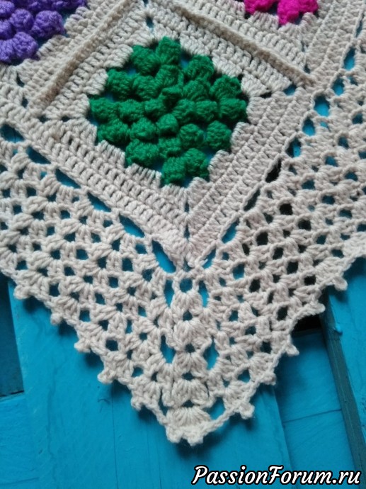 Для вязания этого пледа использовала остатки пряжи от других проектов . Плед связан из пряжи "Детская новинка" . Размер 90*90см. Ушло 400г .