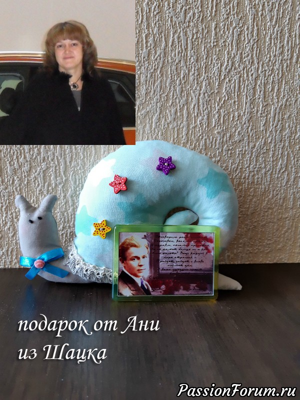 Аня...о, это отдельная песня)))) сколько мы с ней нахохотались ( я так, вообще, до слез, грешна, батенька, грешна), я не буду здесь писать, какую оценку она дала моему подарку))) я поняла, что это был высший балл, как в фигурном катании))) Ань, я очень рада, что мы с тобой познакомились и, очень надеюсь, подружились. Если Бог даст, я постараюсь выполнить свое обещание, которое дала вам всем в последний день, когда вы меня провожали))) (но как правильно заметила Людочка, осенью, ближе к зиме, чтобы огороды у всех закончились)