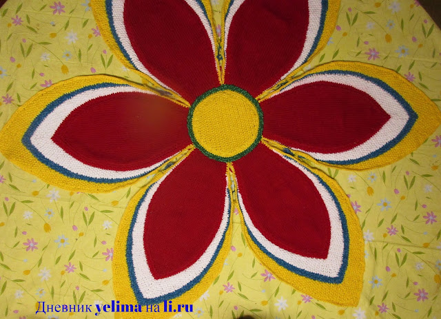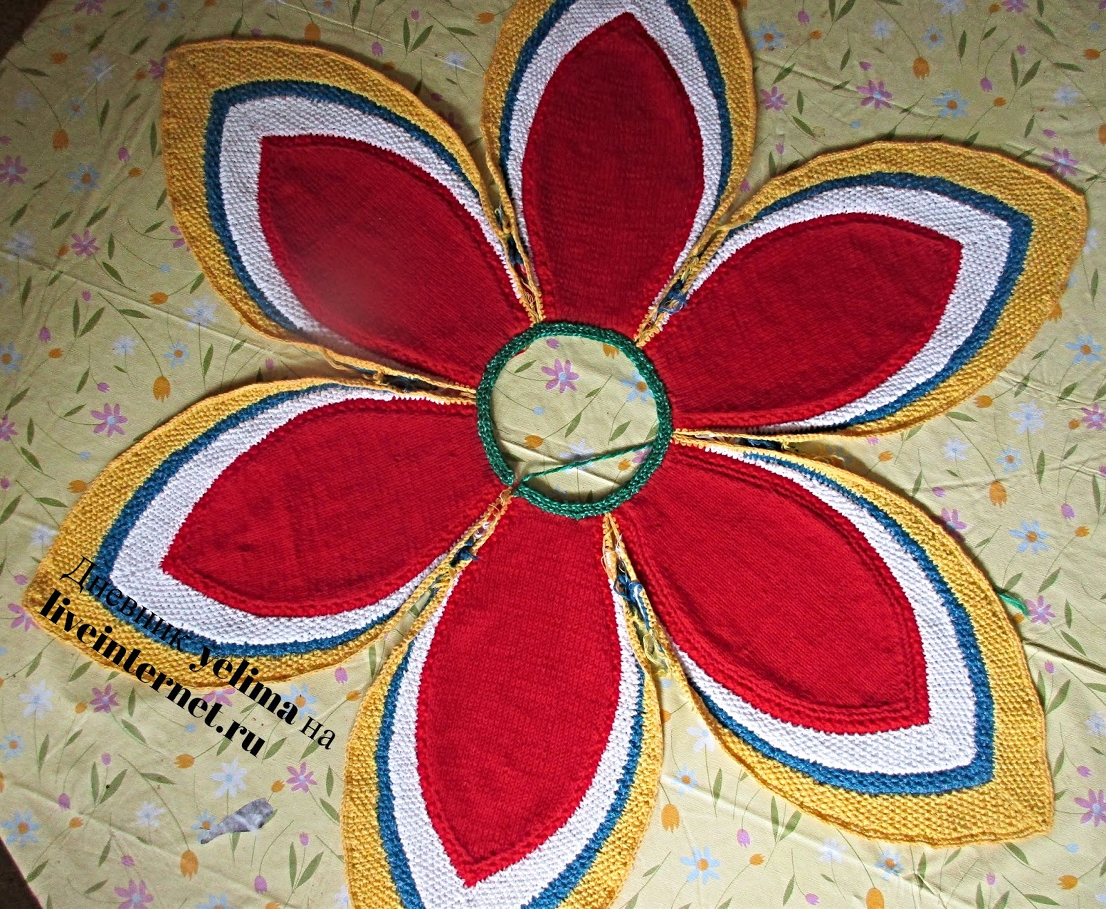 Важно, что провязать по кругу надо только 4 ряда-лицевыми петлями, и в третьем убавить по 2 петли на каждом лепестке.