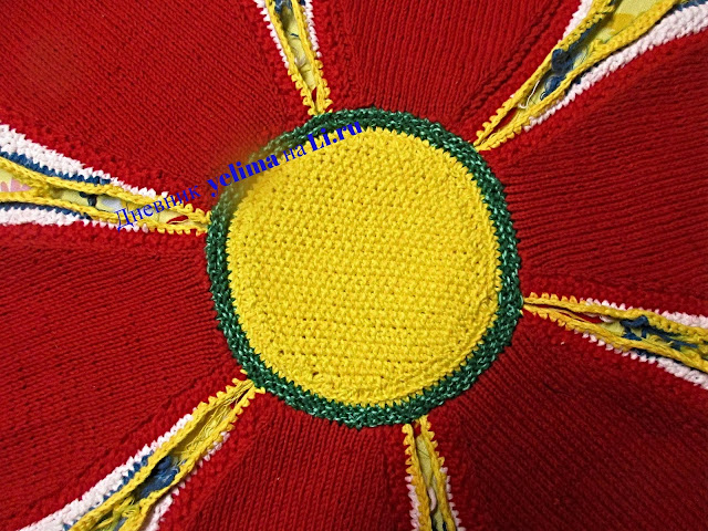 Поверху зелёного кольца набираем те же 102 петли, но жёлтой нитью.