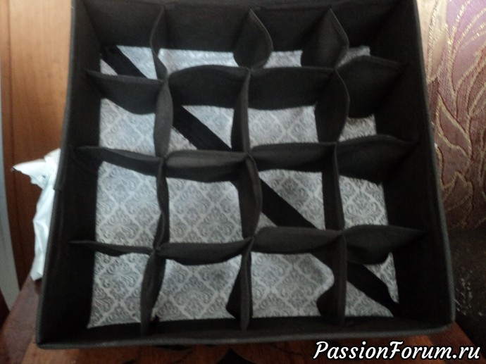 ОРГАНАЙЗЕР!Двадцать ячеек!Чего только положить туда можно.Я так подробно сфотографировала,может кто-то посмотрит и себе такой сделает,по бокам вставлен картон.Перегородки из материала.Ну очень удобная вещь.
