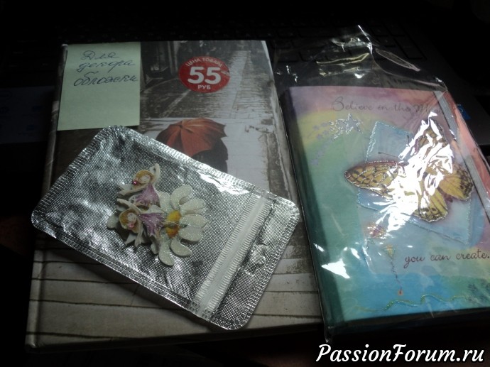 А вот и блокноты,один большой как ежедневник,а другой маленький и очень милые наклейки феечек на цветочках.Для декора обложки.