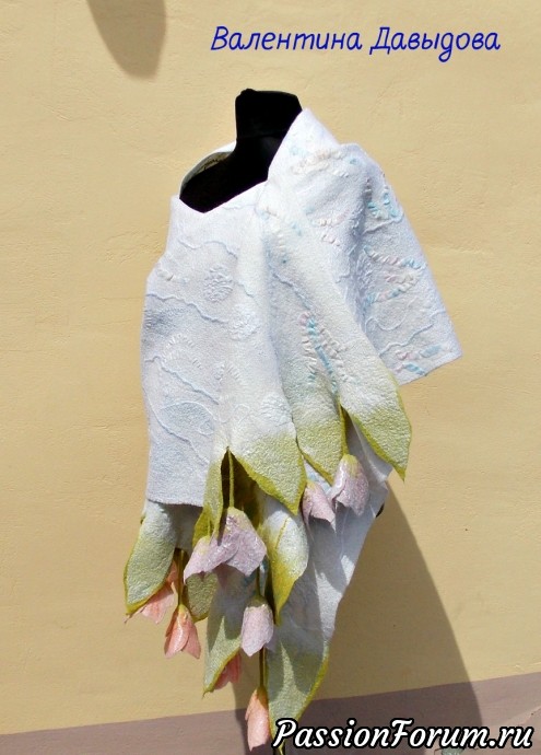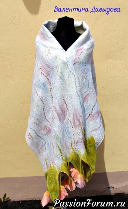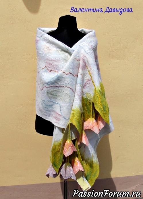Валечка, как же я обожаю такие вот твои палантины! В прошлом году уже почти собралась свалять, но что-то опять помешало. И тюльпаны валяные уже лежат года три, ждут… Браво!!!