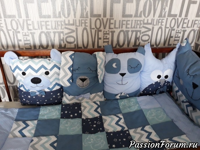 Красивые у тебя работы получились, мне понравились. Очень. Подушечки в кроватке шикарные и очень нужные. Представляю, как Степашка радуется им!!!