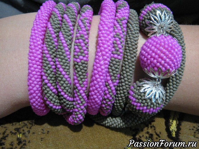 Благодарю вас! А набираю я в несколько этапов по полтора-два метра низни, а затем соединяю.Пробовала больше, очень тяжело и передвигать бисеринки, и нить иногда крутится, а частями удобно.