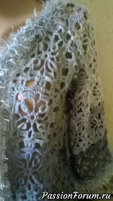 Очень красиво получилось, вот, только не в обиду, это исключительно мое видение, обвязка травкой удешевляет жакет. Даже не знаю, как и объяснить-то, сам жакет связан очень красивым и богатым узором, а вот травка его делает действительно, как костюм для снегурочки. Но это мое мнение и пожалуйста не обижайтесь, я по себе знаю, как бывает обидно, старалась, старалась, а тут лезут со своими придирками.