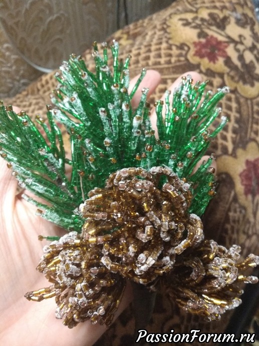Снега в самый раз. Может, фото так прозрачность бисера передаёт, но жалко было и тот, что облетел в процессе сушки-залачивания.