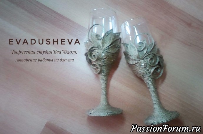 МК. Свадебные бокалы /джутовая филигрань/Jute craft /filigree /evadusheva©2019.