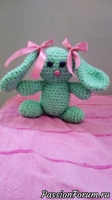 Связала Зайку для семилетней подруги моего сыночка. Выполнено по видеоуроку: