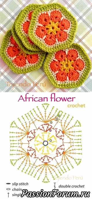Мотив «Африканский цветок» очень популярен при вязании мягких игрушек крючком. Такие мотивы бывают треугольными, четырех-, пяти-, шести-, семи- и восьмиугольными. Принцип их вязания одинаков. А имея фантазию, можно придумать многочисленные варианты объединения мотивов в фигуры лошадей, коней, бегемотов, лягушек, собак, динозавров. Вяжут и более прозаические вещи — сумочки, пледы, подушки.