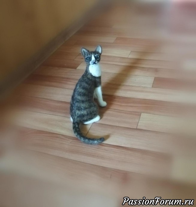 Добрый вечер! Решила показать свою новую работу,это кошка,она еще не совсем готова,но мы очень хотели пофотографироваться)))Кошечка сваляна из шерсти,рост около 21см,носик слеплен из полимерной глины,будут длинные усы из конского волоса,и с шерстью еще думаю,пушить или наращивать)))