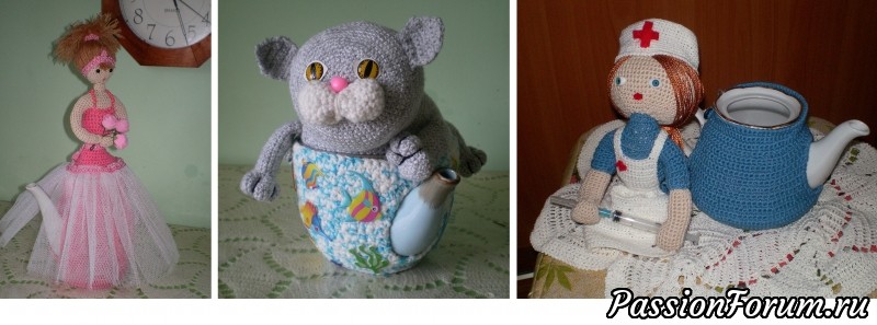Лето: приезд дочурки, огород, ремонт балкона и ...заказы, заказы. Не скучала, творила: и одежка для чайников, и кофтюли, и рисунки на футболках и джинсах... Все не успела заснять. Показываю пока одежку на чайники.