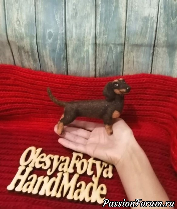 Добрый вечер!Сегодня хочу показать еще одну свою таксочку,она самая маленькая из сделанных мной ранее такс,всего 10см с головой и 6см в холке.