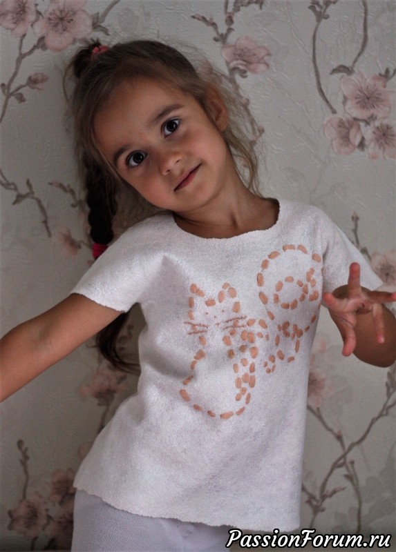 А внучка кофтой очень довольна, впервые она так приняла к душе мою работу. Ещё мне очень импонирует, что она с удовольствием позирует. Сегодня объясняла ей, кто такая модель и что она делает, как надо позировать. У меня сразу поднялось настроение от предчувствия, что внучка будет носить валяные вещи и позировать в них. А это значит, что будет для кого валять, будет кого наряжать, будет кого с удовольствием фотографировать и будет куда расти мне в моём творчестве!!! )))